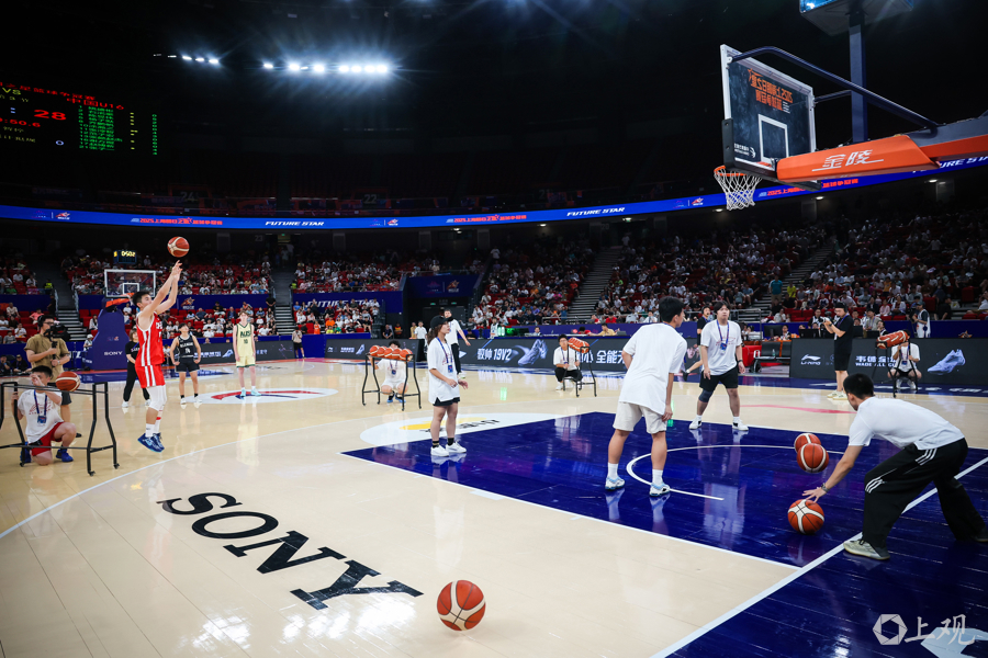 比赛间隙举行的篮球游戏体验、三分球大赛等活动。
